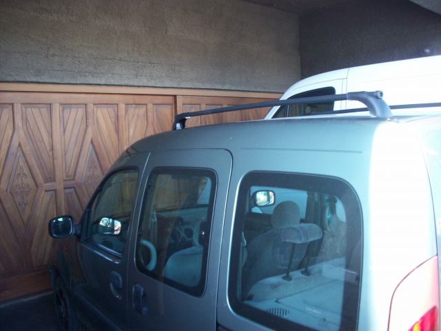 Barras portaequipajes Kangoo de colocación longitudinal sobre las fijaciones provistas de fabrica.