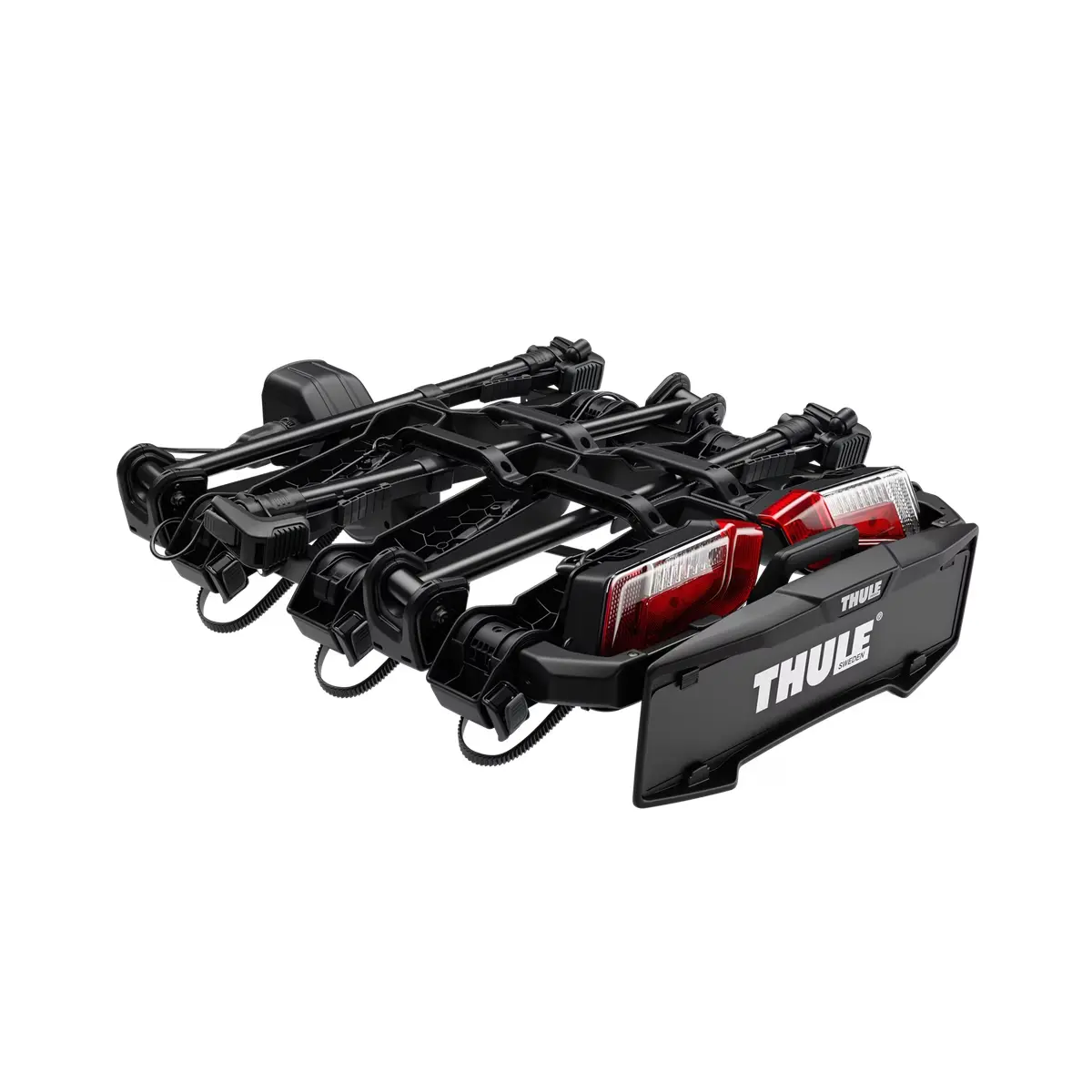 Con la capacidad de transportar hasta tres bicicletas y una función especial de inclinación hacia arriba, Thule OutPace reduce su espacio cuando está estacionado, minimizando el riesgo de daño. Las lámparas integradas aseguran visibilidad y seguridad.